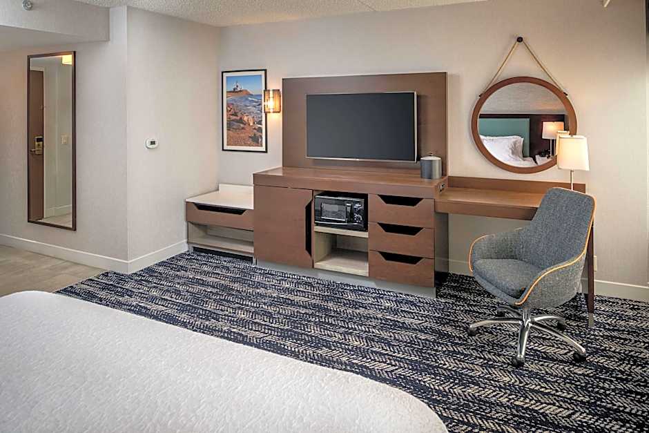Free WiFi, 32-inch HDTV, sofa bed, easy chair & ottoman, desk, mini-refrigerator, microwave Settle into this spacious non-smoking room which features one king-sized clean and fresh Hampton bed®, a sofa bed and an easy chair with ottoman. Unwind and watch a movie on the 32-inch HDTV or work at the desk and stay connected with free WiFi access. Enjoy the convenience of having a mini-refrigerator, microwave and coffeemaker in your room. The bathroom provides plush towels, a shower with WaterPik® showerhead and a curved shower rod which allows more light and space in the shower.